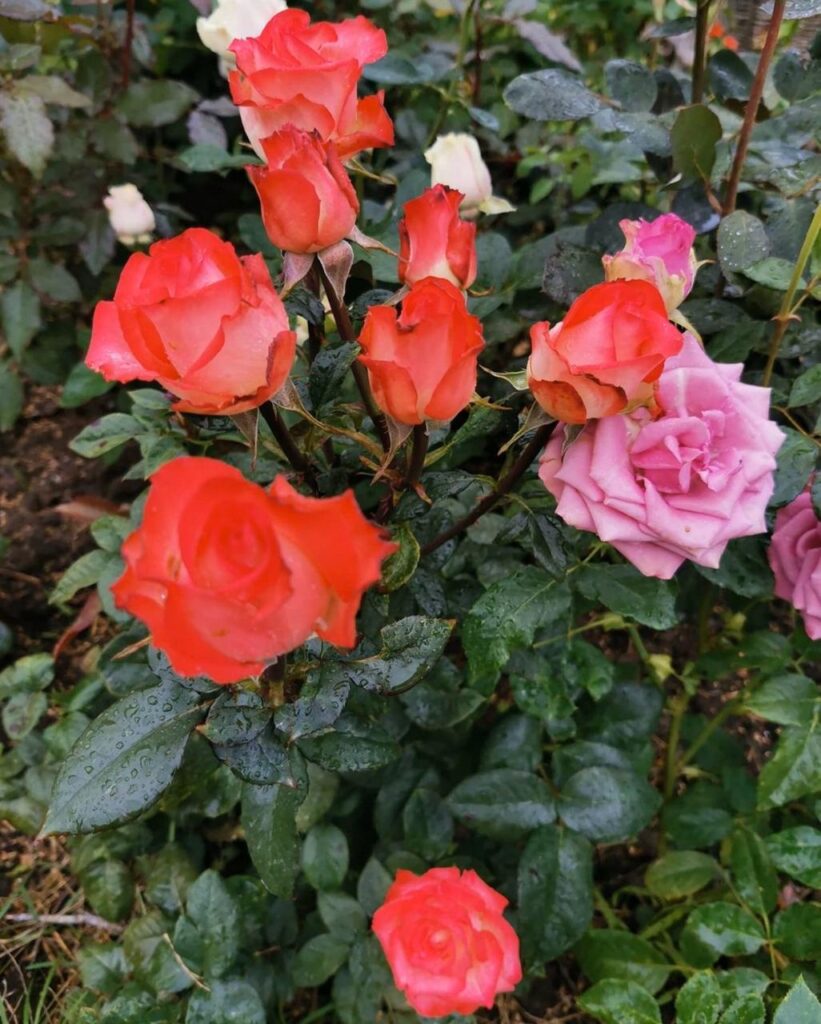 Роза Блаш Этот сорт выведен в Соединённых Штатах в 2007 году. Чайно-гибридная роза по праву считается одной из лучших шедевров селекции. В переводе с английского языка слово «Blush» означает «румяный». Благодаря нетребовательности к уходу и условиям произрастания сорт Блаш любят как начинающие цветоводы, так и профессионалы. Ботаническое описание Бутон розы Блаш плотный, высокий, махровый, диаметром 9 – 11 см. Он довольно длительное время держит форму, а распускаясь, завораживает своим необычным видом. Края лепестков из ярко-красных оттенков преобразуются в более светлые морковные. Цветёт культура продолжительный период, начиная с мая-месяца и до самых заморозков. Раскрываются бутоны по одному на каждом стебле. Иногда роза Блаш цветёт небольшими кистевидными соцветиями, состоящими из 3 цветков. Роза источает едва ощутимый, нежный аромат. Кусты аккуратные, прямые, достигающие 120 – 150 см в высоту. Листва тёмно-зелёная, устойчивая к заболеваниям. Применение Эффектная роза Блаш считается ценным приобретением для любого розария. Состриженные бутоны и раскрывшиеся цветы длительное время сохраняют свежий вид. Растение хорошо смотрится как в сольных, так и в групповых посадках. Красоту многолетника дополняют белые и ярко-жёлтые розы. Агротехника Правильный состав почвы, удачное место высадки и здоровая рассада — основные критерии для активного роста и интенсивного цветения розы. Купить растения лучше в последних числах марта. До момента высадки саженцы хранят в увлажнённом песке в прохладном помещении. Перед тем как разместить кустики на участке их замачивают в воде на 2 – 3 часа. Высаживать сорт Блаш лучше на хорошо освещённой клумбе. При этом необходимо и небольшое затенение. Прямые УФ-лучи допускаются в вечерние и утренние часы. В саду должен беспрепятственно циркулировать воздух, однако холодные сквозняки не желательны. Желательно выбрать место на возвышенности. Свойства идеального субстрата для розы Блаш: низкий уровень кислотности (pH в пределах 5 – 6); рыхлая структура; высокое содержание гумуса; слабосуглинистый или суглинистый состав. Также подойдёт чернозём или другая плодородная земля. А вот песчаная почва плохо отразится на декоративных качествах кустарника. Она не может удерживать влагу и содержит минимум питательных веществ. Изменить ситуацию поможет внесение в грунт компоста, дерновой земли, торфа или глины. Процедура посадки рассады выглядит следующим образом: На расстоянии 50 см выкапывают посадочные лунки. Глубина ямы – 50 см. Корешки растения погружают в болтушку, приготовленную из воды, глины и навоза (в соотношении 1:2:1). Саженец помещают в лунку. Корни засыпают субстратом и уплотняют. Вокруг стебля делают земляной валик, чтобы после полива вода не растекалась, а оставалась в прикорневой зоне. Бутоны у розы Блаш образуются при температуре +14 – +20 °С. В первые годы жизни растения такой диапазон особенно важен. Поэтому при заморозках и в сильную жару кустики окучивают на 15 см и укрывают лутрасилом. В тёплую погоду необходим своевременный полив. Расход воды на один взрослый экземпляр – 10 л. Процедуру проводят 2 – 3 раза в неделю. Во время подкормки розы Блаш рекомендуется придерживаться такой схемы: весной во время интенсивного роста используют азотные удобрения. Второй раз вносят калийсодержащие препараты. В пери